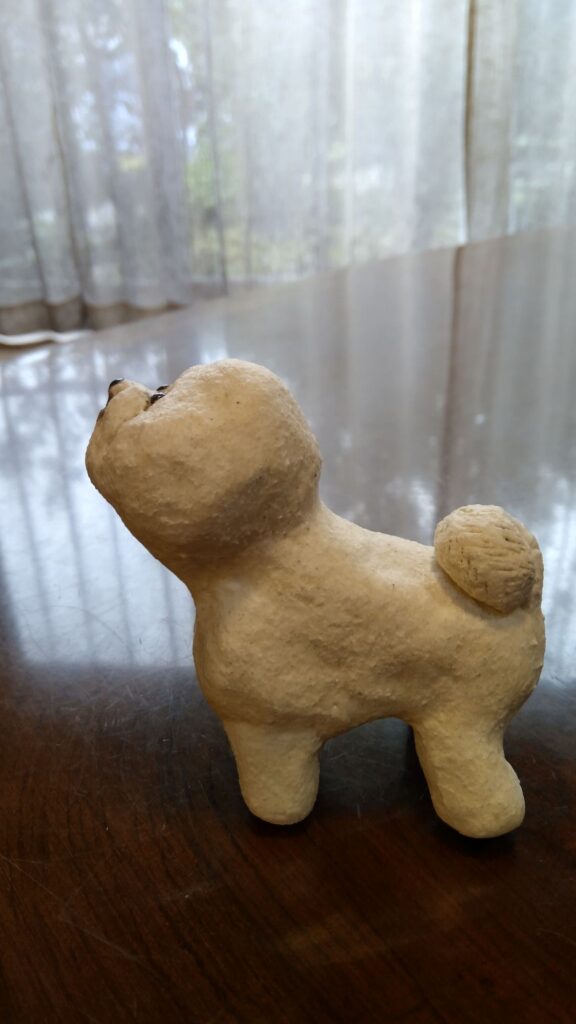 3回くらい作り直しましたが、この犬の特徴である”キツネ顔”にはなりませんでした。